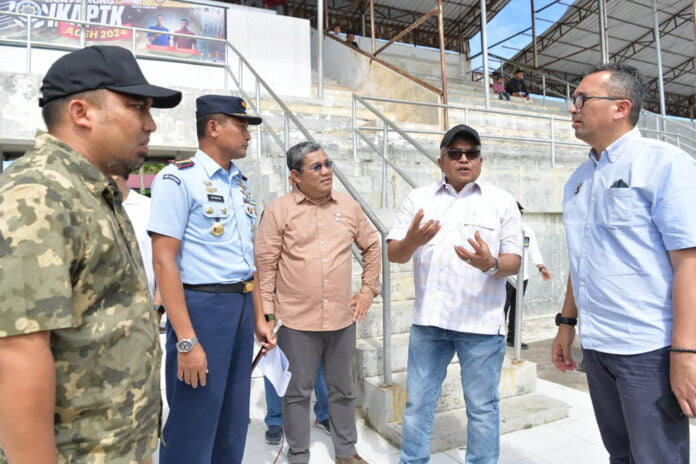 HABAKITA – Pj Gubernur Aceh, Bustami Hamzah, kembali meninjau pengerjaan venue PON yang digunakan pada penyelenggaraan Pekan Olahraga Nasional (PON) XXI Aceh-Sumut 2024, ke sejumlah yang berada di Kota Wisata Sabang, Sabtu (8/6/2024).