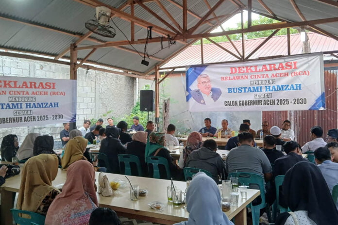 HABAKITA – Relawan Cinta Aceh (RCA) mendeklarasikan dukungan untuk Bustami Hamzah maju dalam Pemilihan Gubernur (Pilgub) Aceh 2024. Mereka berkomitmen untuk bekerja keras memenangkan Bustami dalam Pilkada mendatang.