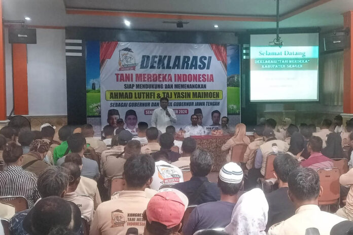 “Kami Tani Merdeka diinstruksikan oleh Pak Prabowo dan Pak Sudaryono untuk mendukung dan memenangkan Ahmad Luthfi dan Gus Yasin di Pilgub Jateng 2024,” kata Don Muzakir di depan ratusan anggota Tani Merdeka Sragen.